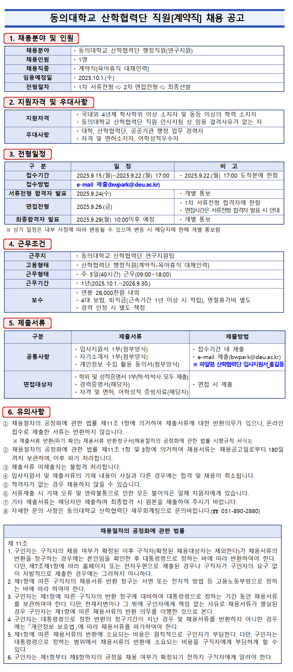 동의대학교산학협력단 직원[계약직_육아휴직 대체인력] 채용 공고
