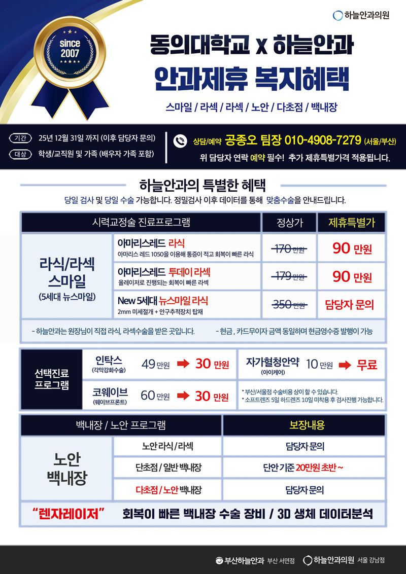 - 수술시 자가혈청서비스(10만원 상당) 무료지원