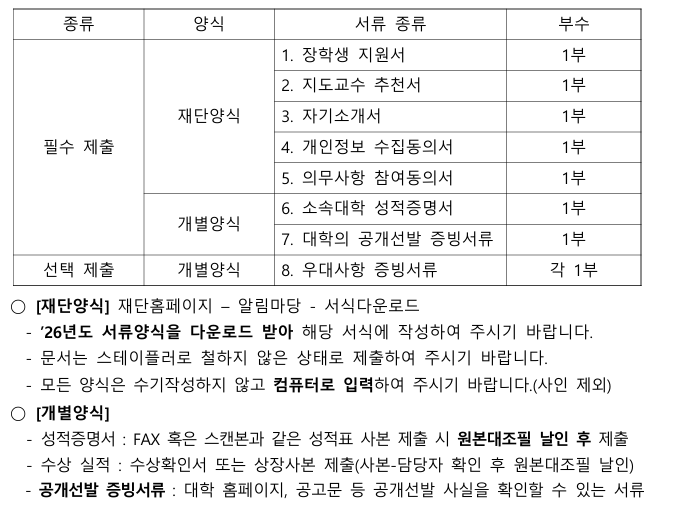 ■ 2026년도 한국지도자육성장학재단 신규 장학생 선발 안내